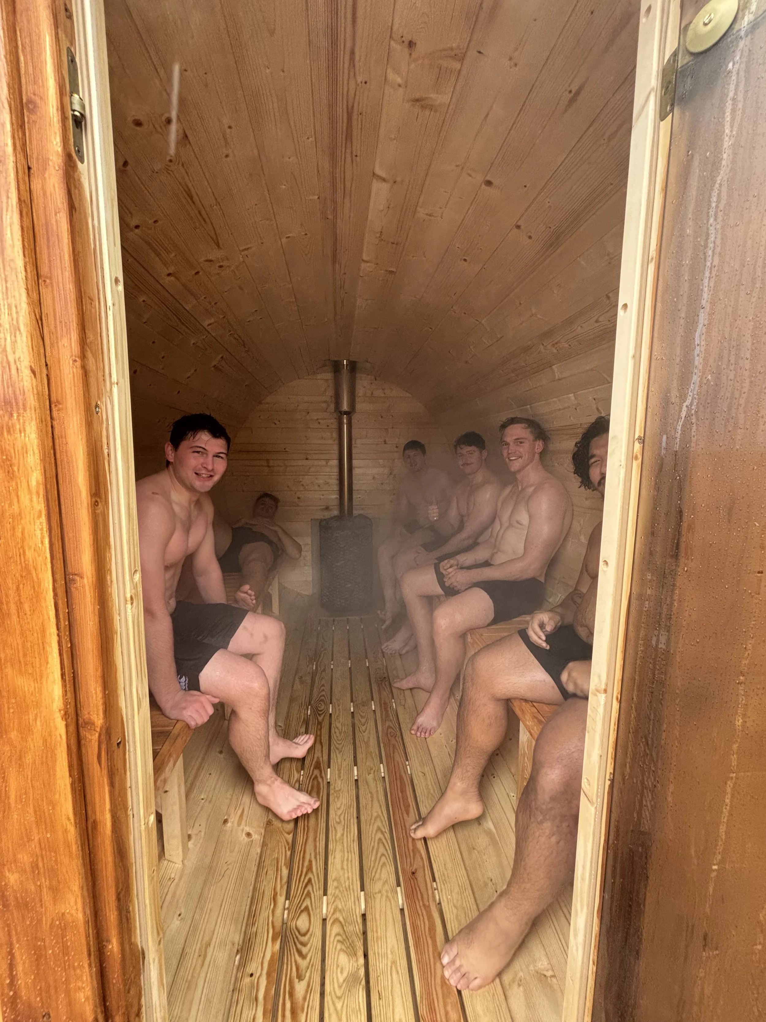 Our handcrafted woodfired barrel sauna comfortably accommodates up to 10 guests, offering an authentic heat experience with temperatures ranging from 75°C to 95°C with humidity ranging from 5-20%.